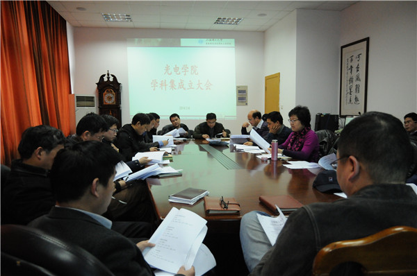 2014年3月4日下午,js3845金沙线路学科集成立大会在学院401会议室顺利举行,学院常务副院长杨永才、分党委书记朱莉、学科分管院长王朝立等学院领导、各学科负责人及省部级人才出席大会。 会上,朱莉首先宣布了院务会议讨论的最新决定,即以光学工程为主干学科,组建三个具有光电个性的、相近学科交融的学科集,并宣读了光电信息学科(群)和各学科集建设委员会名单。杨永才针对学科集建设发表讲话,表达了学院对推动学科协调发展的决心和重视,对各学科集未来发展提出要求和希望,希望通过学科集的建设,加强学科间的交叉融合,推动光电信息学科群高速发展,为实现学校“精品本科,一流学科,百强大业”的目标作出贡献。随后,王朝立对学科集具体开展进行了简要指导。
