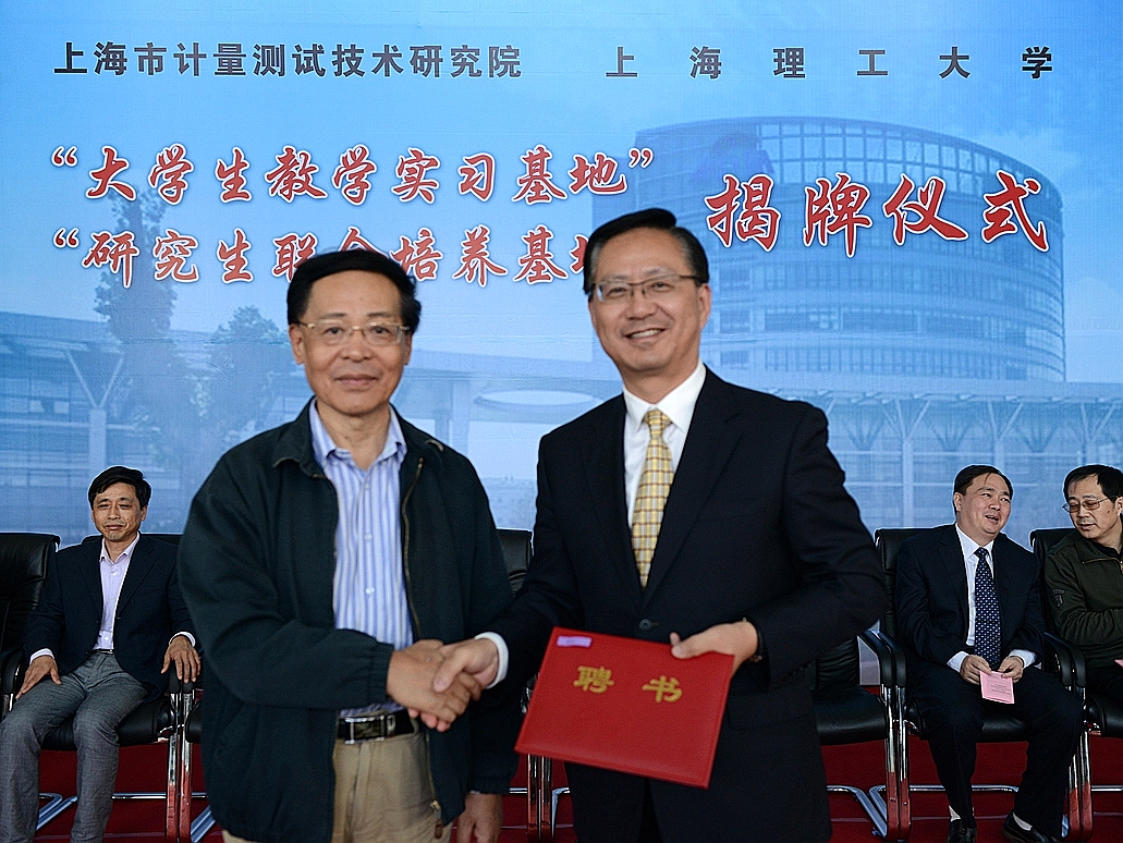 揭牌仪式由计量院吴建英副院长主持。上海市计量测试技术研究院邵力院长致欢迎辞。上海理工大学js3845金沙线路院长庄松林院士与上海市质量技术监督局季晓烨副局长为上海市计量测试技术研究院与上海理工大学“全日制光学工程专业学位研究生联合培养基地”揭牌。上海市计量测试技术研究院邵力院长与上海理工大学js3845金沙线路常务副院长杨永才教授为上海市计量测试技术研究院与上海理工大学“大学生教学实习基地”揭牌。上海理工大学js3845金沙线路庄松林院长与上海市质量技术监督局季晓烨副局长分别作了讲话,随后由上海理工大学js3845金沙线路庄松林院长为上海市计量测试技术研究院十位高工颁发了聘书。 庄松林院长在讲话中表示,上海市计量测试技术研究院是我国最早建立的计量检定专业机构之一,是上海地区唯一由国家授权的公益性、综合性国家法定计量检定机构,也是国家计量行政部门批准设立的大区计量测试中心、国家科技行政部门命名的国家级测试中心,拥有多个研究机构或研究所,以及众多代表国际计量检测先进科技成果的装备。我们光电学院的“光学工程”学科,拥有“国家光学仪器质量监督检验中心”、“全国光学和光子学标准化技术委员会”、“上海市现代光学系统重点实验室”、“光学工程上海市重点学科”等多项国家级和上海市的机构或平台。因此,在很多领域,特别是在“光学工程”领域,我们有很好的科研合作基础。我们光电学院的“光学工程”学科,拥有“国家光学仪器质量监督检验中心”、“全国光学和光子学标准化技术委员会”、“上海市现代光学系统重点实验室”、“光学工程上海市重点学科”等多项国家级和上海市的机构或平台。因此,我们和上海计量测试研究院在很多领域,特别是在“光学工程”领域,有很好的科研合作基础。 上海市质量技术监督局季晓烨副局长和上海市计量测试技术研究院邵力院长在讲话中都强调了对此次“上海理工大学“光学工程”全日制专业学位研究生联合培养基地”和“上海理工大学大学生实习基地”建设的重视,并对基地未来发展提出热切的期盼与真挚的祝愿,最终实现聘请15名企业教授级高级工程师、高级工程师导师来共同指导研究生,建设一个能容纳150(最终达到200)人数规模的工程专业学位研究生的联合培养基地的总目标。 隆重而又正式的揭牌仪式后,上海理工大学js3845金沙线路朱莉书记与上海市质量技术监督局季晓烨副局长分别对后续基地发展发表了讲话。朱莉书记在讲话中提出,上海市计量测试技术研究院与上海理工大学“全日制光学工程专业学位研究生联合培养基地”与“大学生教学实习基地”的建设为全日制工程专业学位研究生提供了实践教学的场所,使学生能够通过实践教学环节,进一步拓宽本领域的专业知识,掌握解决实际问题的能力,不断缩短理论与实践的距离。这次基地的建设是对教育发展起到很大推动作用的一个契机,需要我们双方共同推进,不断努力。