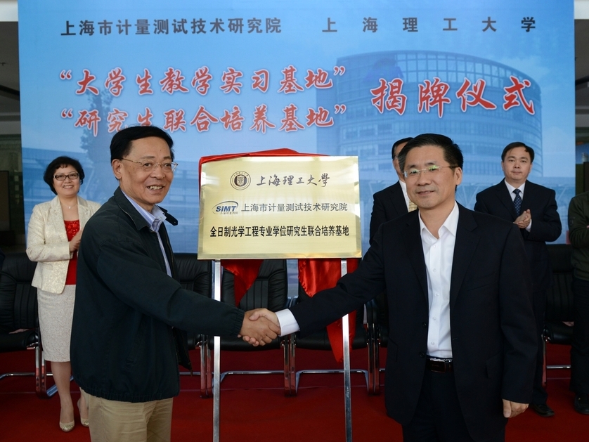 2014年10月28日下午,上海市计量测试技术研究院与上海理工大学“全日制光学工程专业学位研究生联合培养基地”与“大学生教学实习基地”揭牌仪式在上海市计量测试技术研究院隆重举行,上海市质量技术监督局季晓烨副局长、上海理工大学js3845金沙线路院长庄松林院士、上海市计量测试技术研究院院长兼党委副书记邵力教授级高工、上海理工大学研究生院副主任马军山教授等50余人出席了此次揭牌仪式。