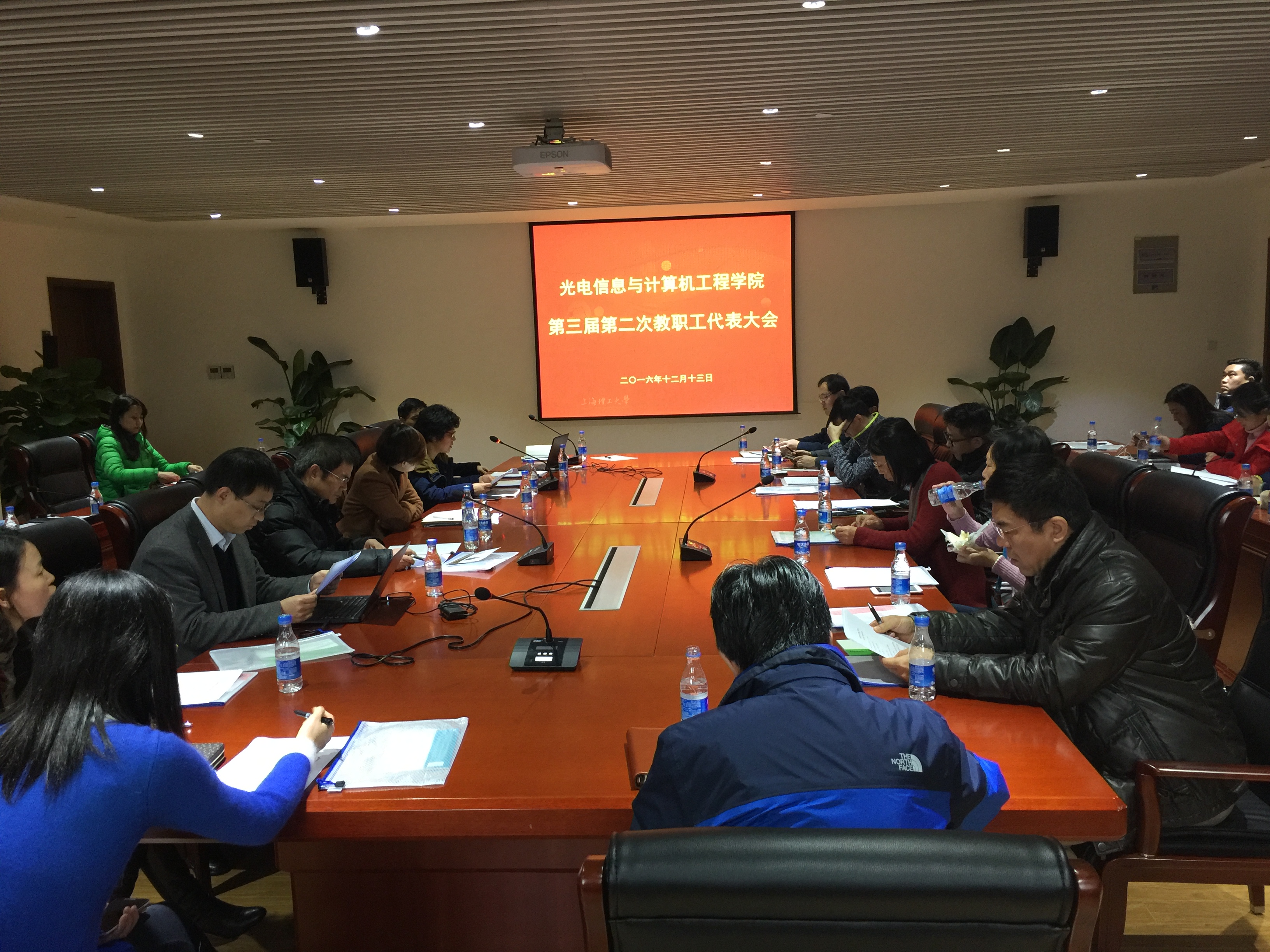 上海理工大学js3845金沙线路第二届第二次教代会于2016年12月13日在光电学院1042会议室召开。参加本次会议的正式代表37人,列席代表2人。光电学院工会主席陈玮代表主持会议。