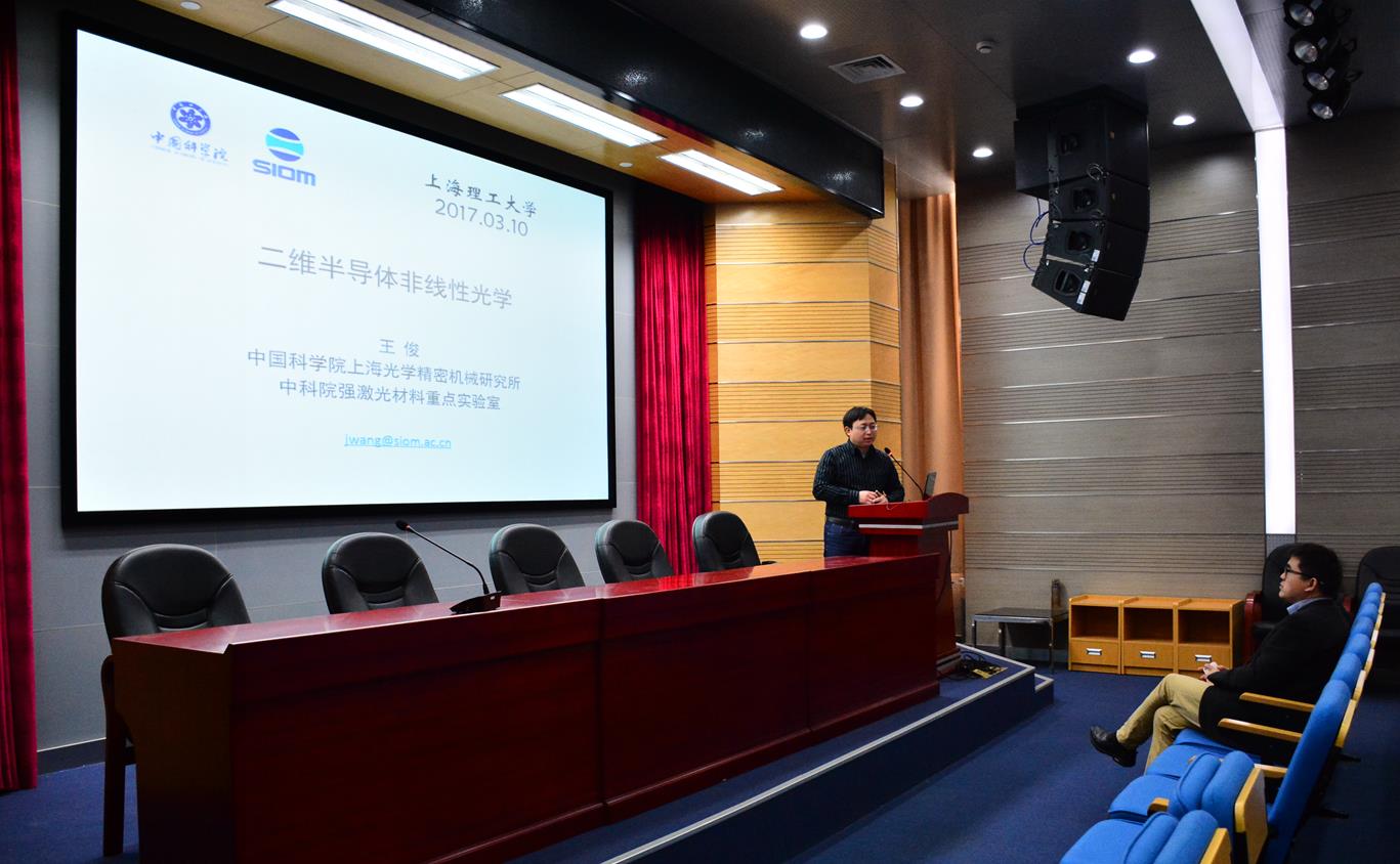 3月10日上午9点30分,应我校张大伟教授课题组邀请,国家优青、中国科学院上海光学精密机械研究所研究员、中科院强激光材料重点实验室副主任王俊在光电学院一楼学术报告厅作了题为“层状二维半导体的非线性光学效应”的学术报告会。会议由戴博副教授主持,来自全校相关专业的教师和研究生参加了本次学术报告会。