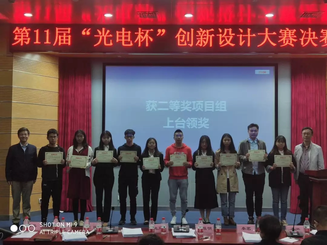 答辩环节结束后,在报告厅隆重举行了光电新能力杯二、三等奖的颁奖仪式,并由评委嘉宾老师为荣获荣誉的项目组颁奖并合影留念。