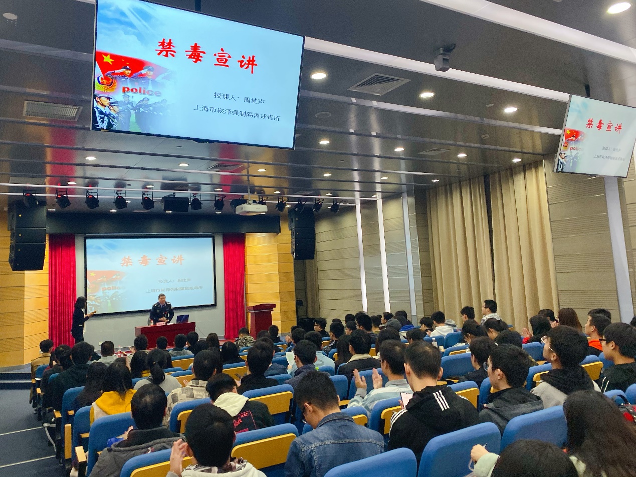为保障大学生身心健康发展,光电学院特别邀请了上海市崧泽强制隔离戒毒所一线民警周佳声警官,11月19日晚上,在光电楼报告厅举办“大学生安全教育之毒品预防教育讲座”。周警官由一张成人吸毒后不得不穿戴纸尿裤的照片开始,为同学们详细的介绍了传统毒品和新型毒品的由来。他提醒同学们注意自己的朋友圈,远离任何跟毒品有关的人或事。最后叮嘱同学们切忌为了一时的不顺去接触毒品,希望同学们都能幸福健康的度过一生。此次活动起到了良好的宣传作用,强调了毒品预防的重要性。