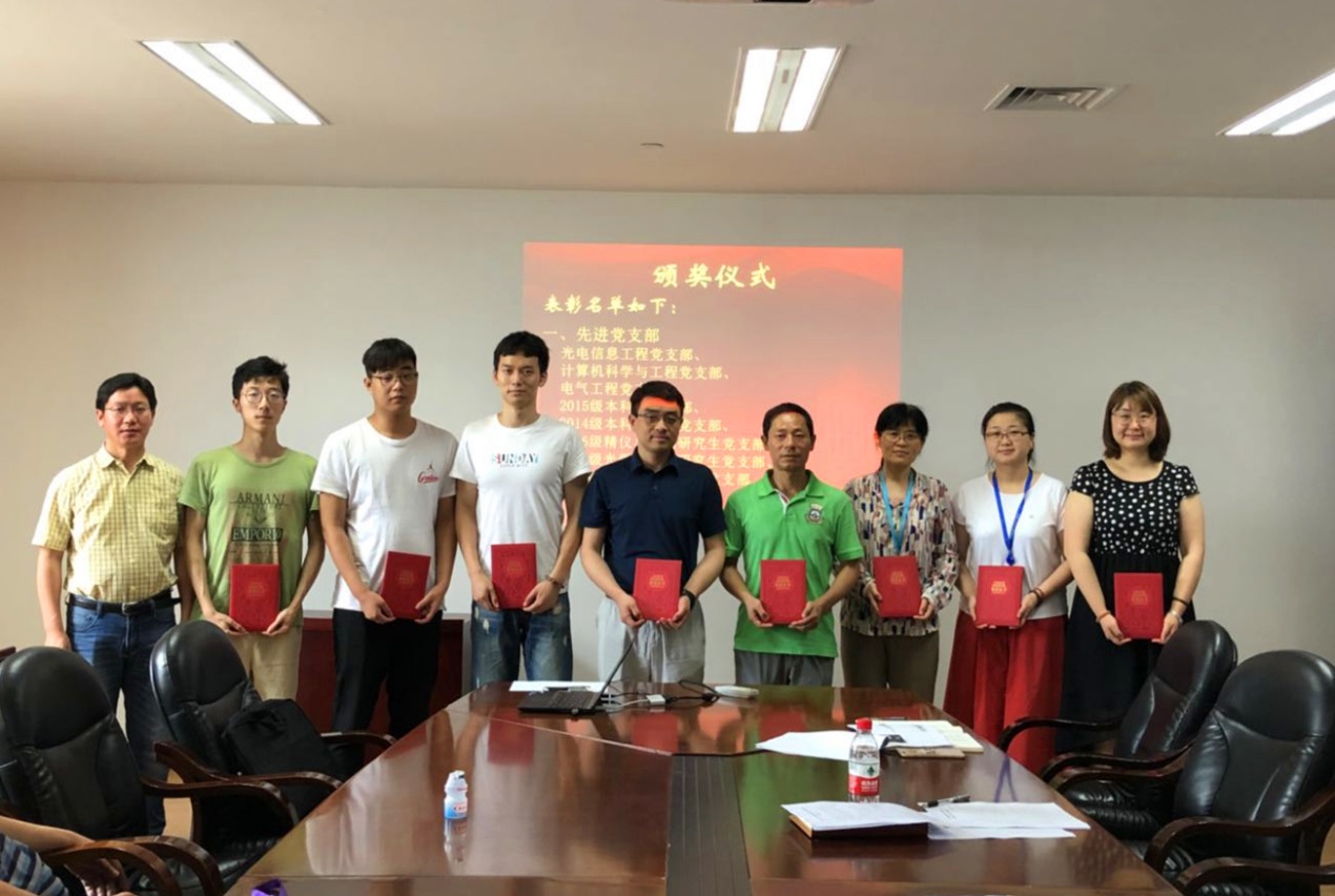 会上,陈海瑾宣读了2017年度光电学院党建工作表彰名单,随后李杰、陈海瑾、曹英分别为获奖个人和党支部颁奖。