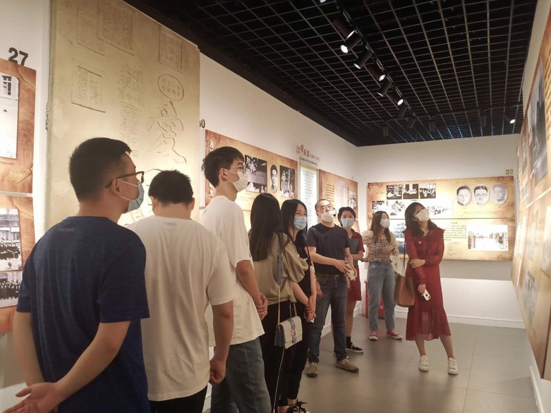首先,党员同志们进入馆内,沿着重大的历史长廊,深入地了解了上海理工大学近百年的历史。讲解员仔细地梳理了上海理工大学曲折前行的历史脉络,大家时而聚集在讲解员身边聆听讲解,时而分散开仔细了解自己感兴趣的史料。宏大的结构、丰富的史料、高科技感的历史再现,让大家真切地感受了上海理工大学百年来走过的不平凡历程。
