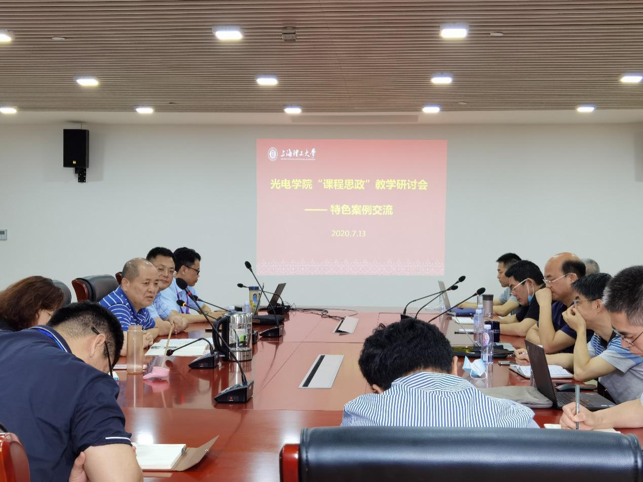 7月13日上午,光电学院课程思政案例交流会在光电楼1042会议室举行。学校党委副书记刘道平、马克思主义学院副院长胡绪明、光电学院党委书记陈海瑾,光电学院副院长杨晖出席会议。学院课程思政领航课程负责人参加会议。会议由杨晖副院长主持。