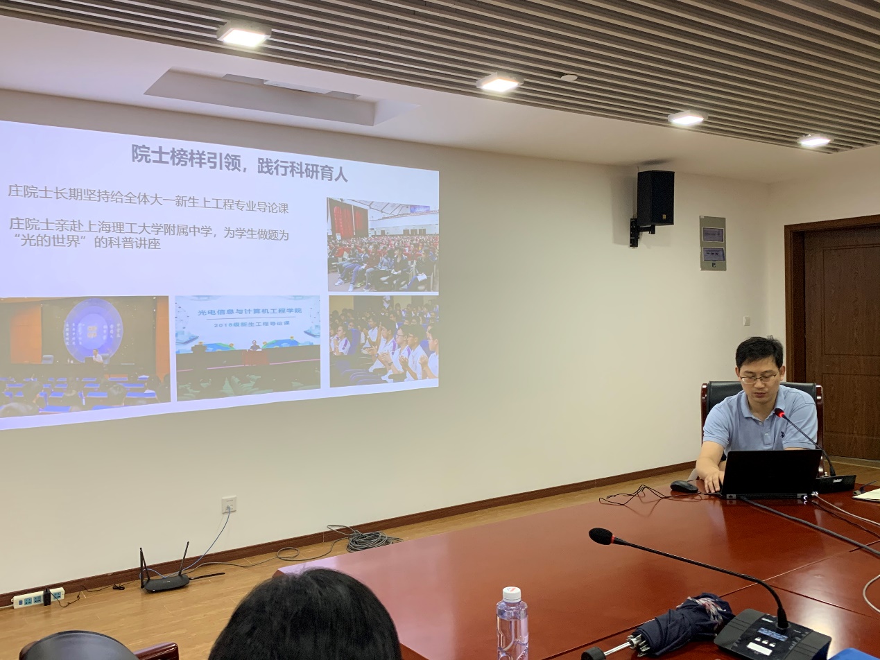 7月7日上午,上海理工大学党委副书记、副校长盛春带领2019-2020年度校级文明单位评选巡访组来我院开展实地巡访。巡访组成员包括:校党委常委、宣传部部长叶磊,校文明观察员王志红,组织部副部长李琴,巡访组秘书张柳。光电学院党政领导班子全体成员和师生代表参加巡访座谈与交流会。