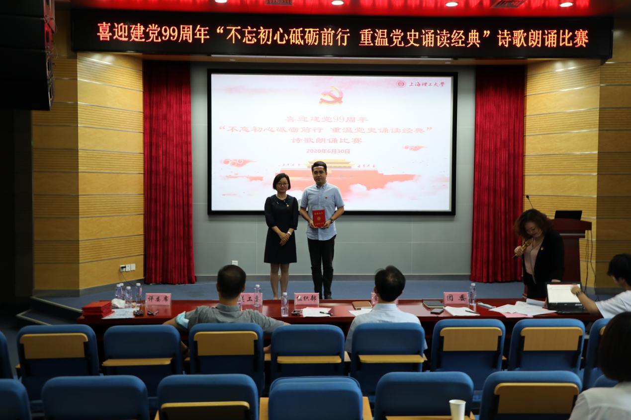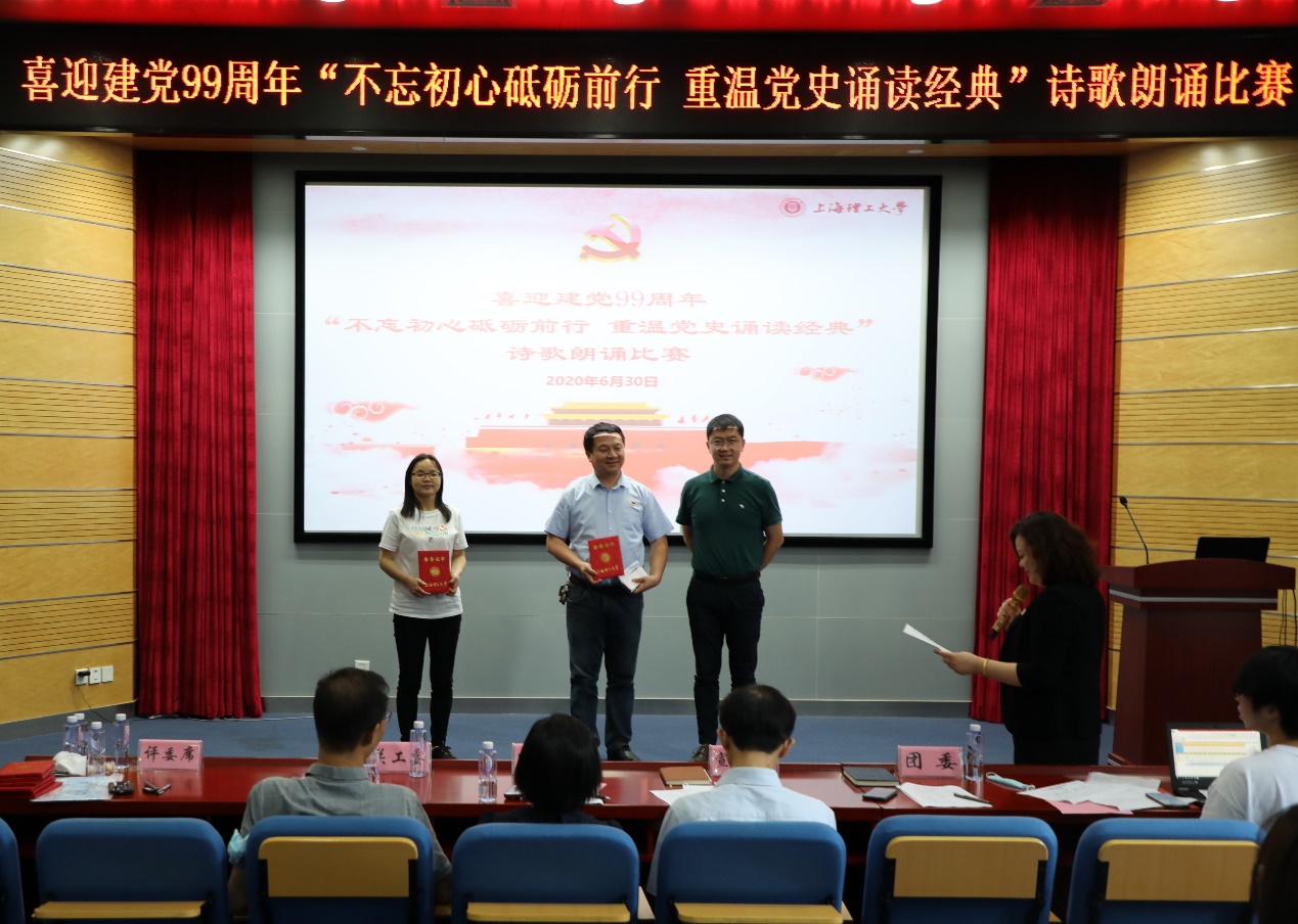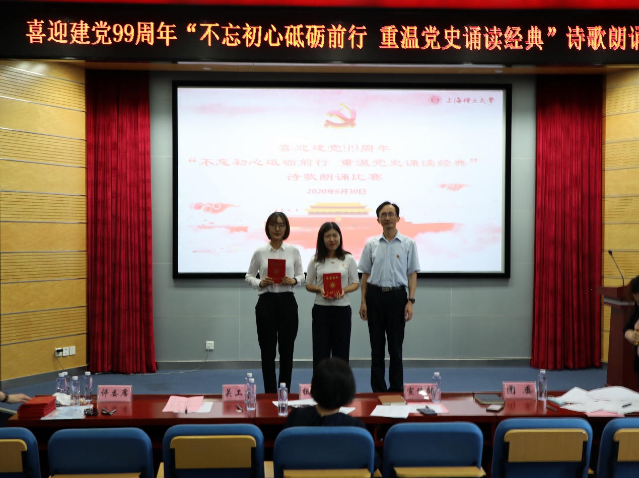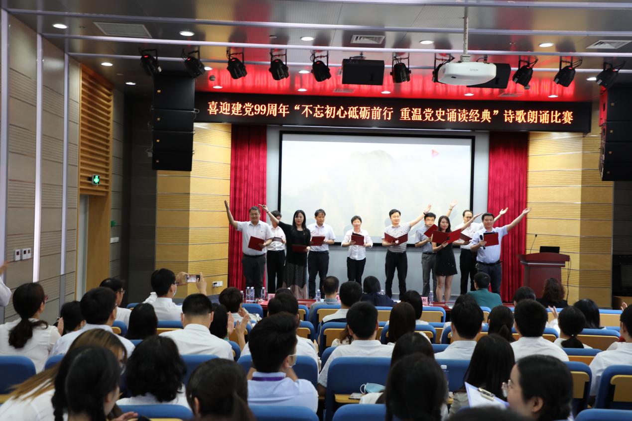 6月30日下午,由js3845金沙线路党委主办的喜迎建党99周年 “不忘初心砥砺前行 重温党史诵读经典”诗歌朗诵比赛在光电报告厅圆满举行。学院党委书记陈海瑾首先宣读了2019年度光电学院优秀基层党支部书记名单,并为获奖的支部书记颁发了荣誉证书。接下来的比赛中,各支参赛队伍围绕“党史”经典主题进行配乐朗诵,党员们精神饱满,神采奕奕,用嘹亮的声音激情诵读,歌颂伟大的党、伟大的祖国,抒发了党员们深深的爱党、爱国情怀,为中国共产党99岁生日献上诚挚的祝福。经过两个多小时激烈的角逐,通过评委现场评分,最终分别从6支教工队伍和13支学生队伍中评选出一等奖2个、二等奖3个、三等奖5个。