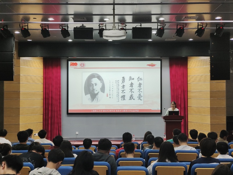 4月30日,光电学院邀请上海理工大学“新时代·青年说”党史学习教育大学生宣讲团讲师在学院报告厅开展“节日里的党史学习教育之青年使命与担当”党史学习教育。“革命就是要流血的,没有不流血的革命。”“我的血,不过是许多革命先烈血海中的一滴,我愿意把我的血,同许多革命先烈的血流在一起。”上海理工大学“新时代·青年说”党史学习教育大学生宣讲团讲师丁琰向大学生党员介绍李公朴的感人事迹谈到。光电学院优秀退伍大学生士兵欧霞以最美的青春、最爱的国家为主题,从入伍动机、大学生向新时代军人转变以及部队服役经历等方面,向大学生党员展示新时代上理人的使命与担当。