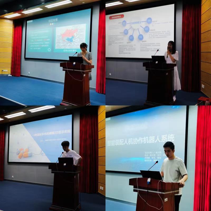 彭宗祥老师为比赛致辞,鼓励参赛选手努力将光电杯倡导的科研创新精神传扬光大。本届“光电杯”自开赛以来共有多支队伍报名参赛,参赛作品涵盖计算机、机械、医疗、通信、能源等领域,各支队伍从作品创新性、创意设计和切实可行的实施计划等方面进行项目展示。评委们从作品的科学性、创新性、可行性及实用价值等方面进行了认真细致的评审,在问答环节中提出了各有价值的问题,探讨了项目的发展方向并给出了宝贵的修改意见,以及之后进步的方向。