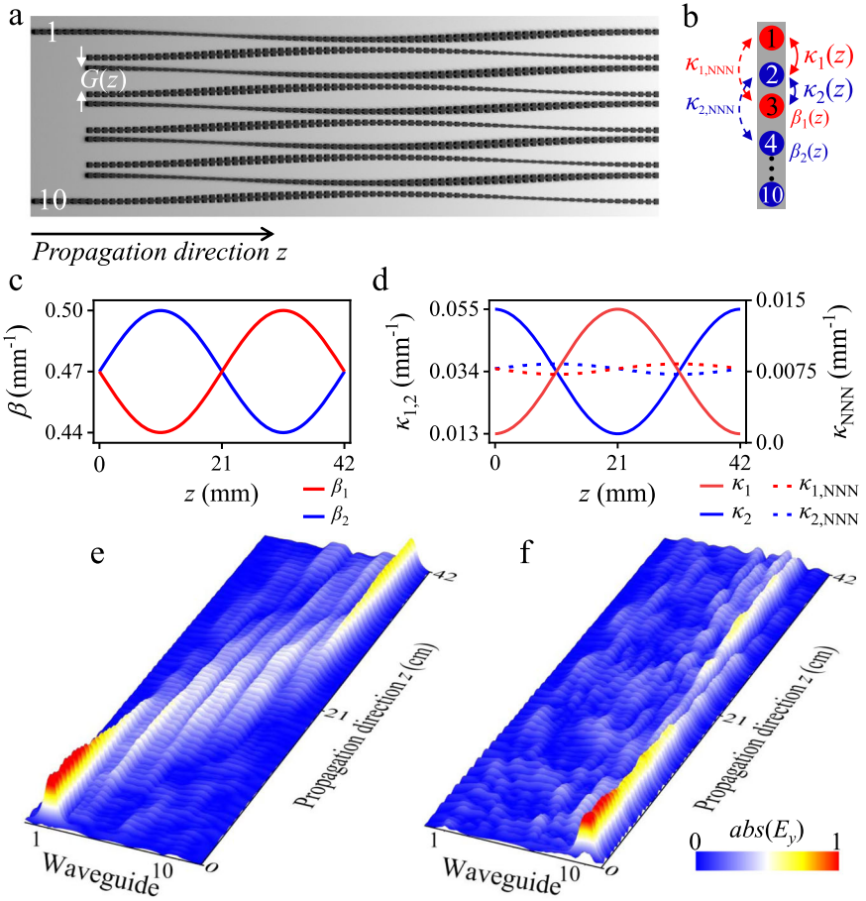 上海理工大学庄松林院士领衔的未来光学实验室、超快非线性光学创新团队程庆庆教授联合南京大学、中山大学、澳大利亚国立大学和以色列理工学院,创新地提出非傍轴引发的非对称拓扑输运,成果发表在国际顶级刊物《自然·通讯》(Nature Communications)上。该成果的发表为新型集成光子学元件研究提供了新途径,同时为非傍轴光子拓扑的研究提供了新平台,使得波导阵列具备广阔的应用前景和作为基础研究平台的学术价值。
