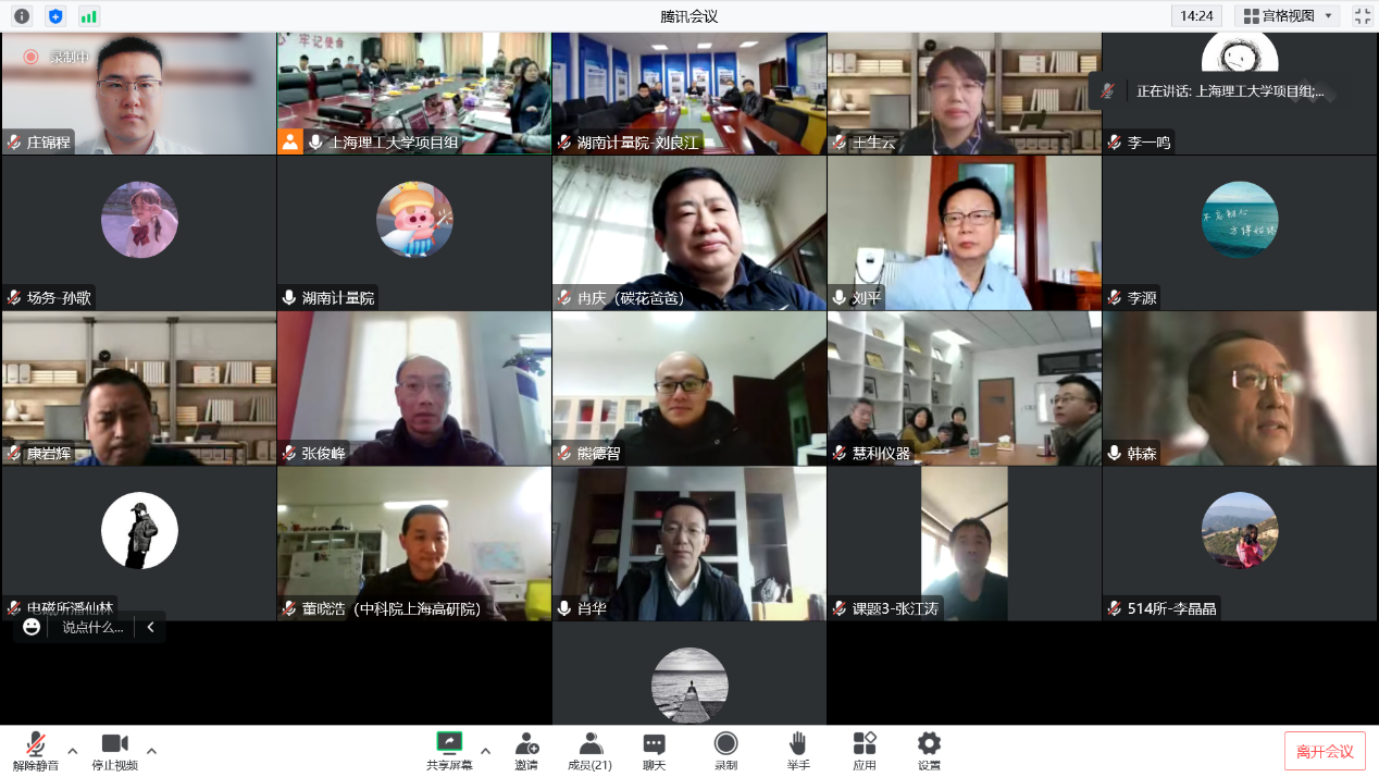 上海理工大学副校长刘平教授致开幕辞,强调NQI体系建设对促进国家高质量发展具有的重要战略意义;光电学院常务副院长张大伟教授介绍了项目合作背景;项目负责人湖南省计量科学研究院副院长李庆先教授级高工阐述本项目作为“国家质量基础设施体系”重点专项开展的目的和意义。