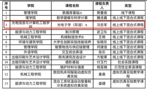 我院《光电子学(双语)A》课程入选2022年度上海高等学校一流本科课程