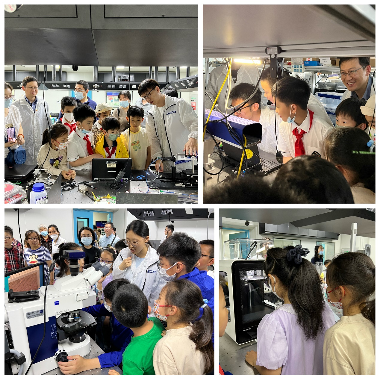 讲座结束后,在光电信息实验中心教师志愿者的引导下,大家有序地参观了上海理工大学太赫兹技术创新研究院及部分光电实验室。师生志愿者们为大家带来了“显微镜下的洋葱皮”、“小小激光书法家”、“3D打印机”、“太赫兹波是什么”、“太赫兹超表面成像”、“太赫兹探测器”、“太赫兹人体安检仪”等体验项目。