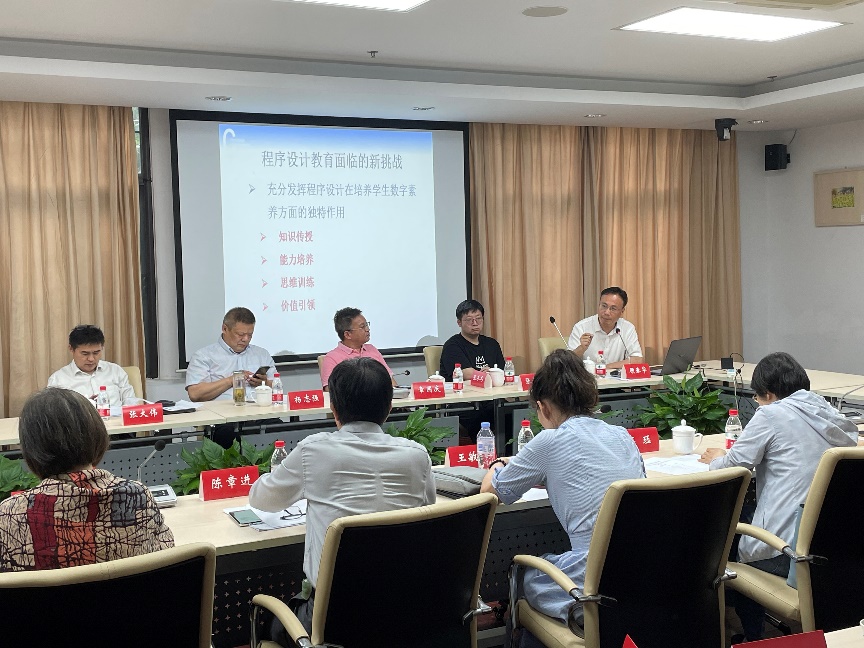 为贯彻2023年全国教育工作会议精神,落实教育数字化战略行动,深入推进高等学校一流课程与教材建设,促进虚拟教研室建设与实践,6月25日下午,上海市教育考试院社考办、上海市计算机基础教育协会和高等教育出版社在上海理工大学召开以“数字素养与技能提升”为目标的计算机科学通识教改研讨会(第1期)。研讨会由上海理工大学教务处副处长章国庆教授主持,上海理工大学js3845金沙线路常务副院长张大伟教授代表承办方致辞。