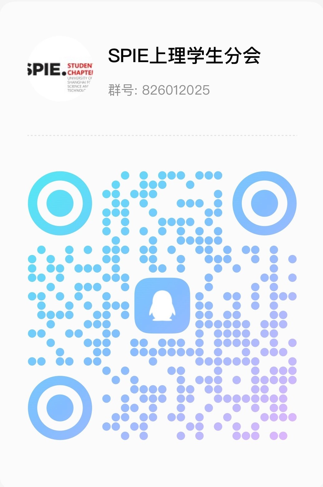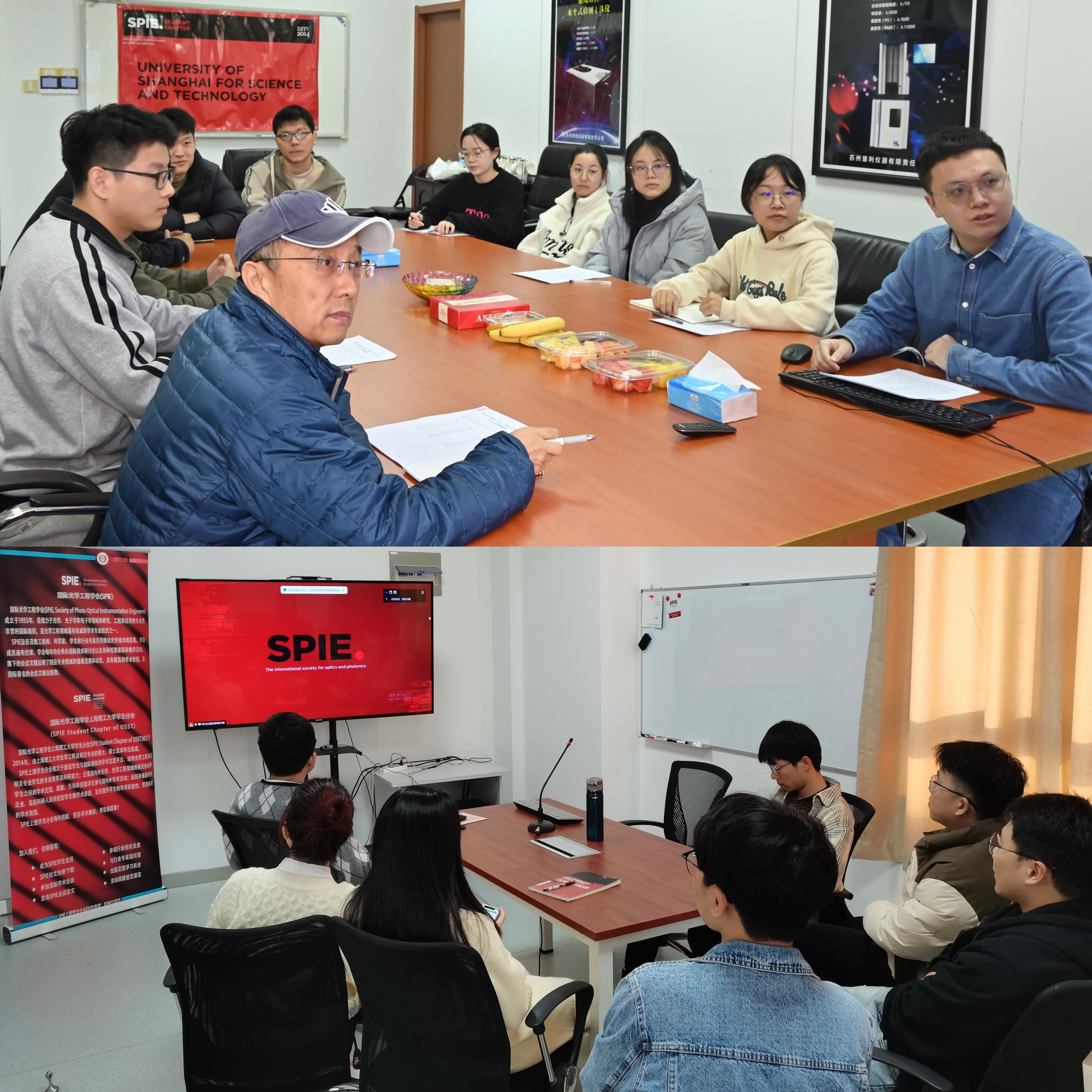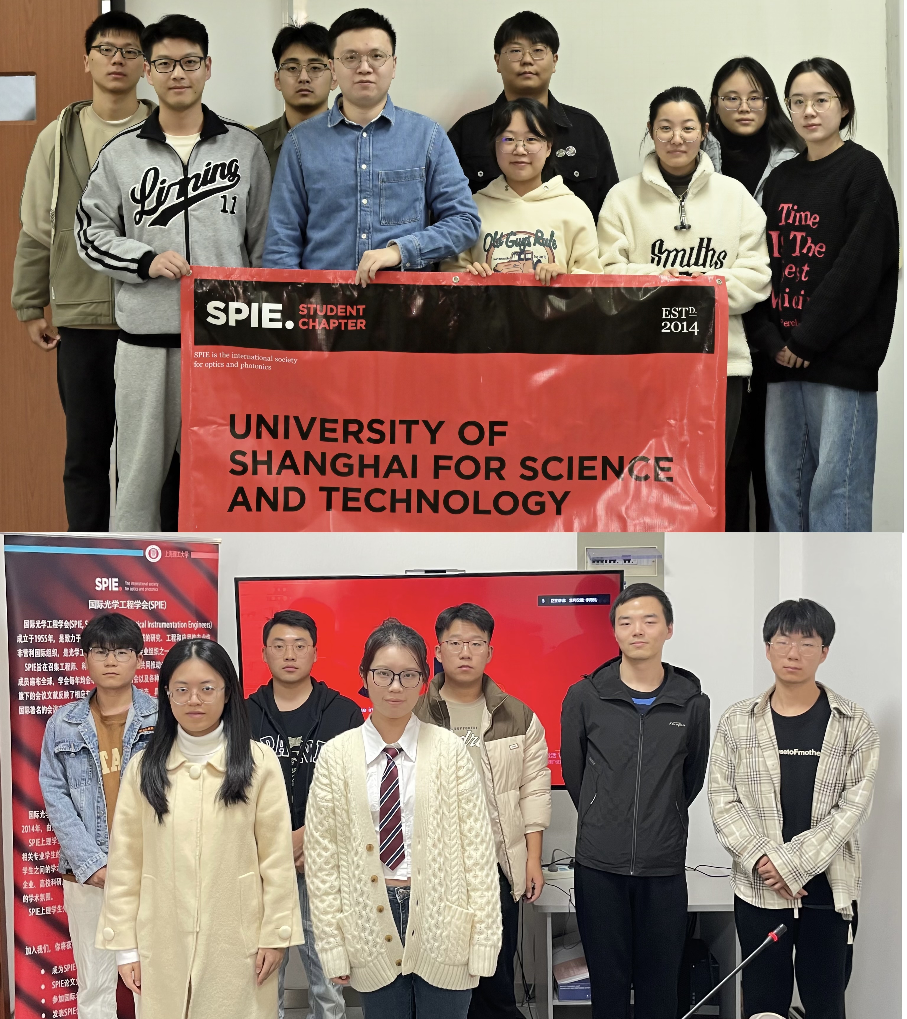 国际光学工程学会上海理工大学学生分会(SPIE Student Chapter of USST) 是上海理工大学韩森教授于2014年10月发起成立,致力于建设学生与国际接轨的学术交流平台,成员由上海理工大学光学工程及相关专业的博士、硕士及本科生组成,现任主席为博士研究生沈宇航同学。
