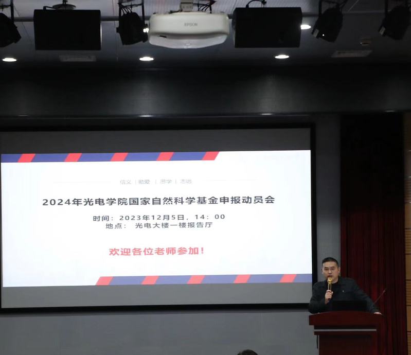 为提高我院国家自然科学基金项目(以下简称“基金”)申报质量,使初次申报的青年教师全面了解基金并准确、及时地掌握基金申报的注意事项,学院于125日下午在光电大楼一楼报告厅举办2024年基金申报动员会。学院教师及新进博士后共130余人参加了动员会,会议由张大伟常务副院长院长主持。