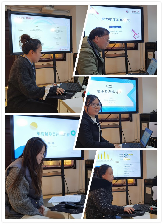 学院专兼职辅导员围绕新时代学生工作如何开展、“Z”世代大学生思想政治教育有何新特征、新变化、学院学生工作如何助推学院人才培养和学院事业高质量发展主题,从全年基础工作、学生党建工作、年度重点工作、特色亮点工作、成绩与不足和2024年工作计划等方面一一进行述职答辩。