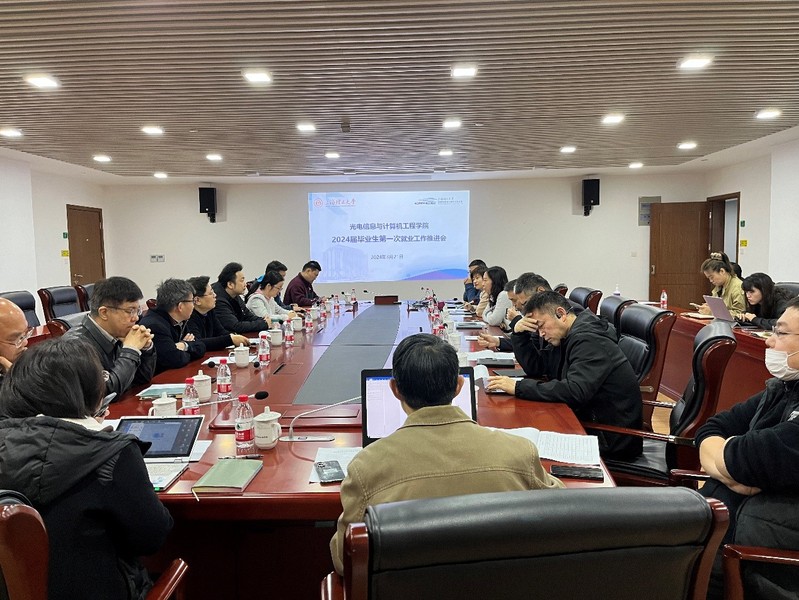 321日上午,光电学院在1042会议室召开2024届毕业生第一次就业推进会,学院领导班子、校就业指导中心主任、各系系主任、专业负责人、毕业班辅导员等出席会议。学院党委书记袁媛主持会议。