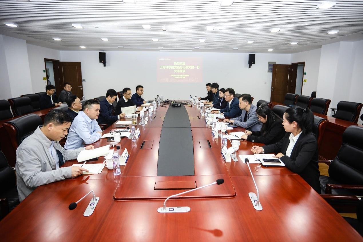 座谈会上,秦文波简要介绍了依托上海科学院组建的国家半导体照明工程技术中心成立历史与发展进程及现阶段所面临的问题,对近些年来在庄松林院士领衔下的团队在光学领域所取得的成绩给予了高度肯定。他指出,上科院与上理工关系密切,半导体照明工程中心与庄院士领导下的光电学院渊源深厚,希望双方要更加紧密合作,优势互补,站在国家高度,围绕国家战略需求和半导体智慧照明等应用方向,以1个中心、多个研究所为制度设计,加强国家半导体照明工程技术中心的建设。庄松林代表学院对秦文波书记一行表示热烈欢迎,表达了非常乐意合作的愿望,强调了双方合作的方向需针对国家及行业应用需求,展开进一步研讨。张大伟建议,双方共派人员,紧扣国家重大战略需求,围绕行业前沿技术,整合多方资源,加强产学研合作,为行业发展注入新动力。丁晓东表示,上海科学院是上海科创中心建设的重要力量,具有丰富的科技创新资源。双方长期以来一直交往密切,具有良好的合作基础。希望双方共同努力,尽快将会议共识转化为行动方案和落实举措,为产业技术发展承担更大的任务。