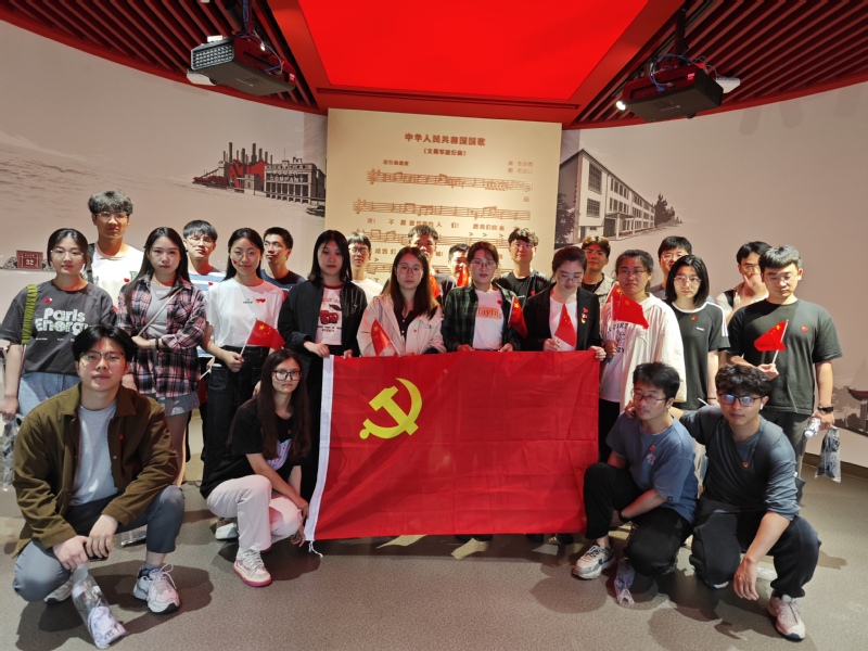 在国歌展示馆内,同学们怀着崇敬的心情,逐一参观了各个展厅。丰富的历史图片、珍贵的实物展品以及震撼人心的多媒体展示,生动地再现了国歌诞生的艰难历程和重大意义。参观过程中,党员们认真聆听线上讲解,不时驻足观看。在观看与国歌相关的纪录片时,大家更是全神贯注,纪录片结束后一起唱国歌,大家都被国歌所蕴含的强大力量深深打动。