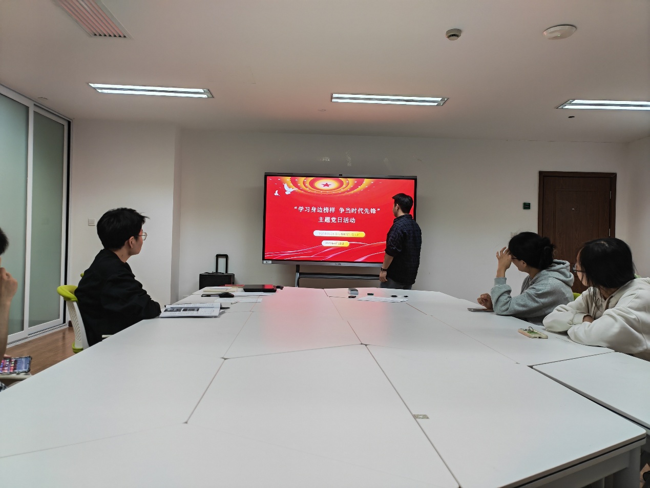 活动伊始,全体党员共同观看主题教育视频《榜样9》。视频聚焦新时代青年科技工作者的成长故事,展现他们扎根科研一线、勇攀技术高峰的奋斗历程。片中“90后”工程师团队攻克智能传感技术难题的事迹,引发在场党员共鸣。