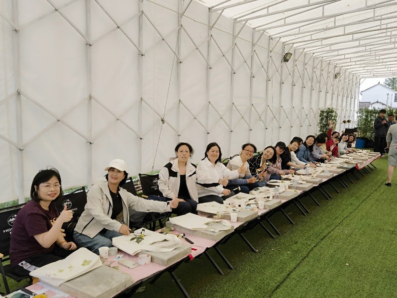 上午的活动以传统植物拓染工作坊拉开序幕。在专业老师的指导下,教职工们系统学习了植物拓染的历史渊源、材料选取、制作工艺及安全规范等知识。随后,大家纷纷动手实践,将精心挑选的花草叶片通过敲拓技法,在棉麻布料上创作出各具特色的自然图案。活动现场气氛热烈,一件件充满自然韵味的作品不仅让参与者掌握了传统手工艺技能,更深化了对生态环保理念的认识。