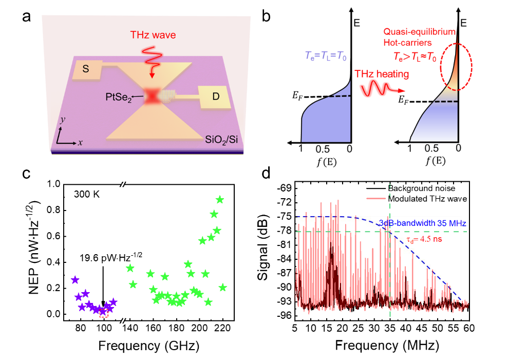 基于范德华半金属PtSe2的太赫兹探测器概念设计和器件性能展示