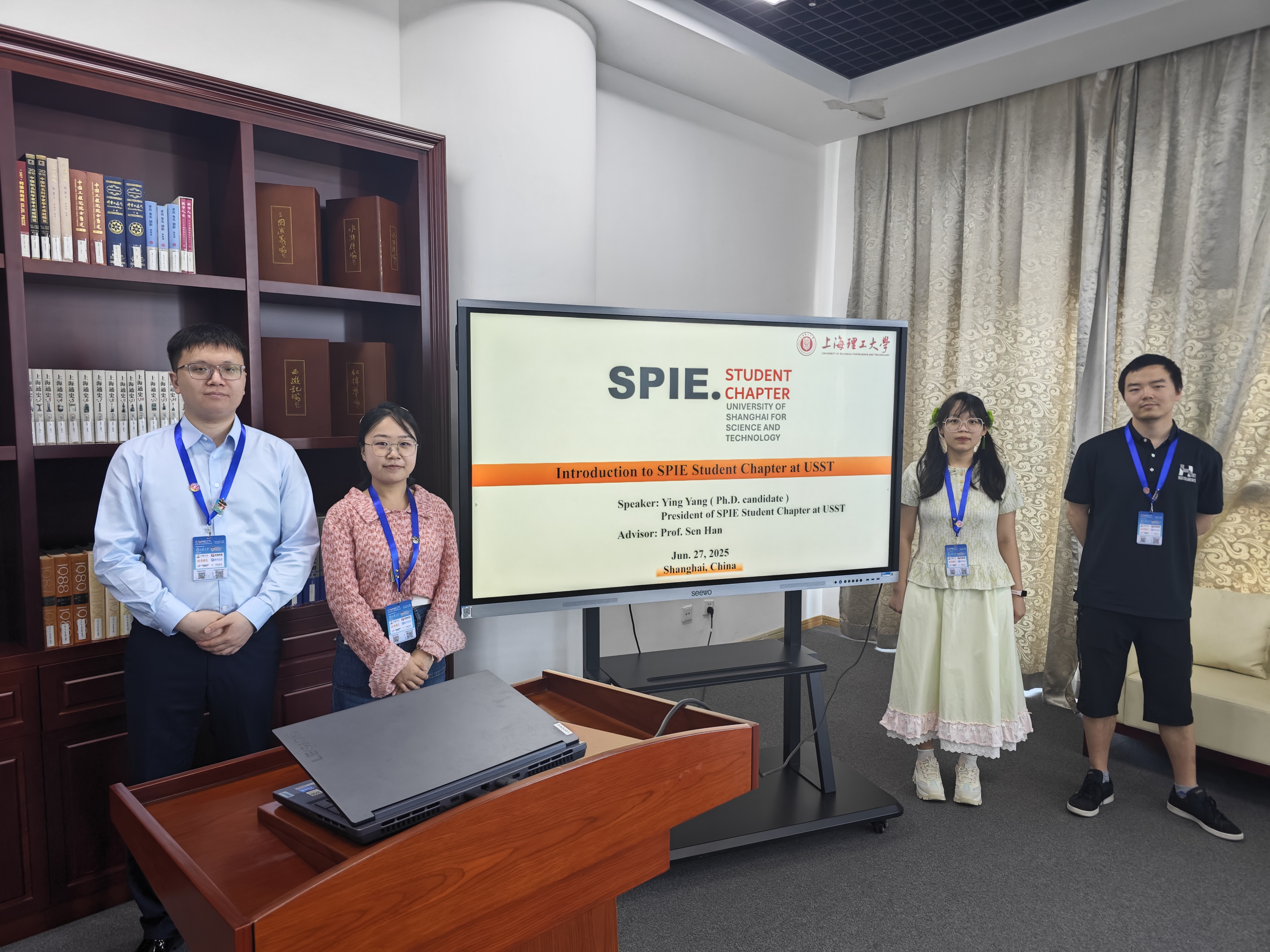 国际光学工程学会上海理工大学学生分会(SPIE Student Chapter of USST)是上海理工大学韩森教授于2014年10月发起成立,致力于建设学生与国际接轨的学术交流平台,成员由上海理工大学光学工程及相关专业的博士、硕士及本科生组成,现任主席为博士研究生杨颖同学。